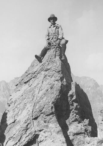 In 1899, Eduard Feuz Sr. and Christian Haesler came to Canada from Switzerland to serve as mountain guides. In the early 20th century they were joined by brothers Ed, Ernst, and Walter Feuz, Christian Haesler Jr., Rudolph Aemmer, and Christian Bohren. Between 1899 and 1954 there were a total of 35 Swiss guides who not only provided the expertise for thousands of climbs and the safe ascents of many peaks in the Selkirk and Rocky Mountains surrounding Golden - with the admirable record of having not a single fatality - but also became tourist attractions in their own right. The wives of the Swiss Guides kept home hearths warm, and helped to build the community that still stands today.