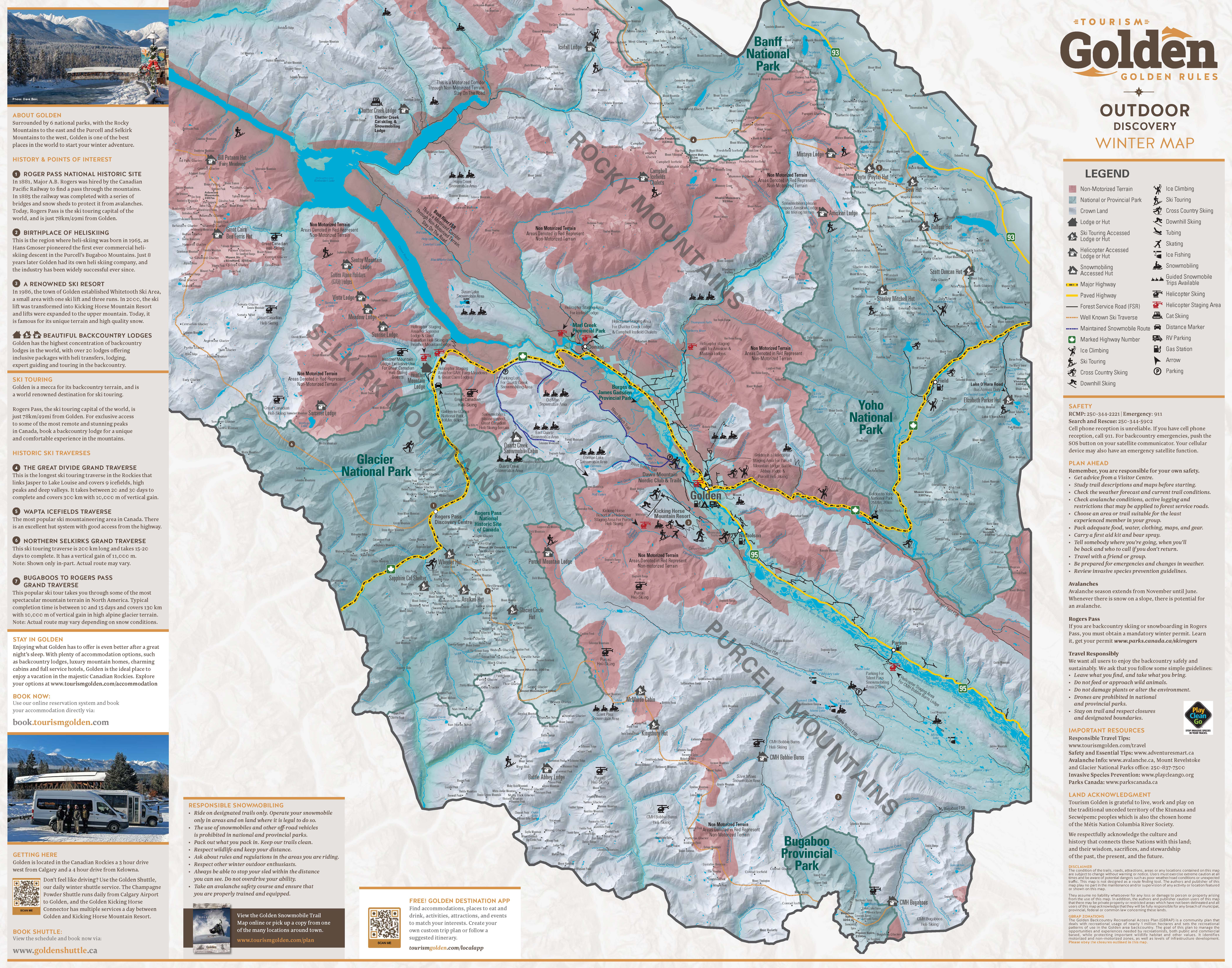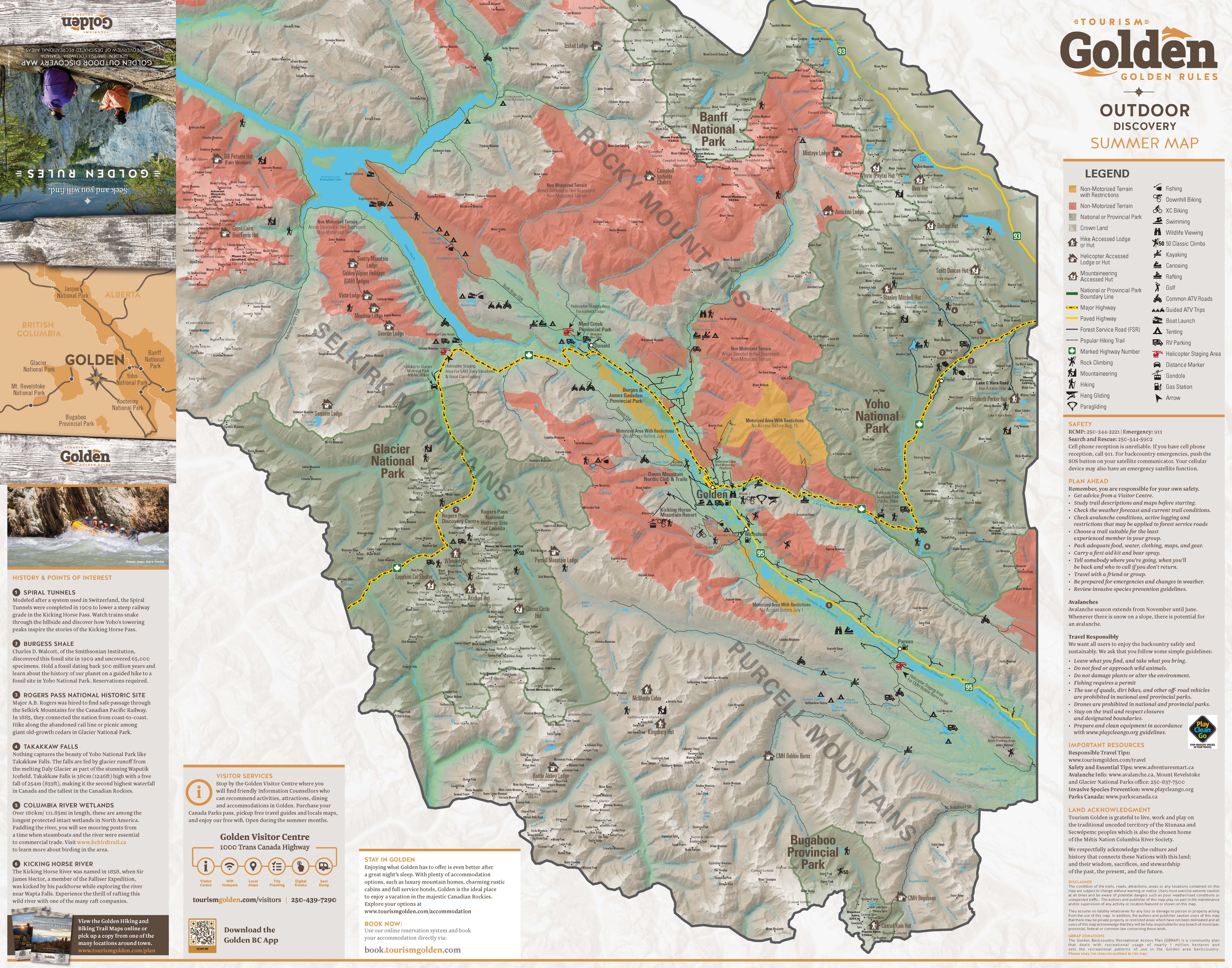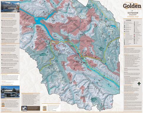 The Golden Outdoor Discovery Map is an overview of designated recreational areas surrounding Golden.