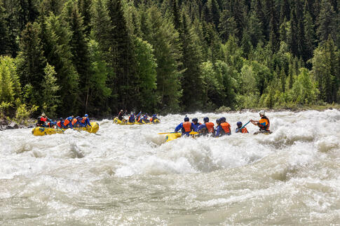 The Kicking Horse River is one of the wildest, most intense recreational waterways in Canada and is popular with kayakers for its Class II to IV rapids.
