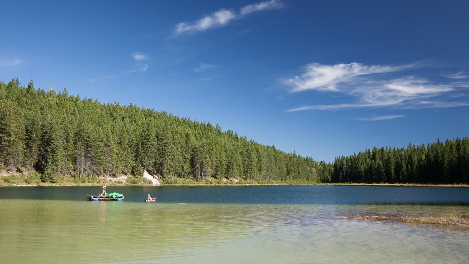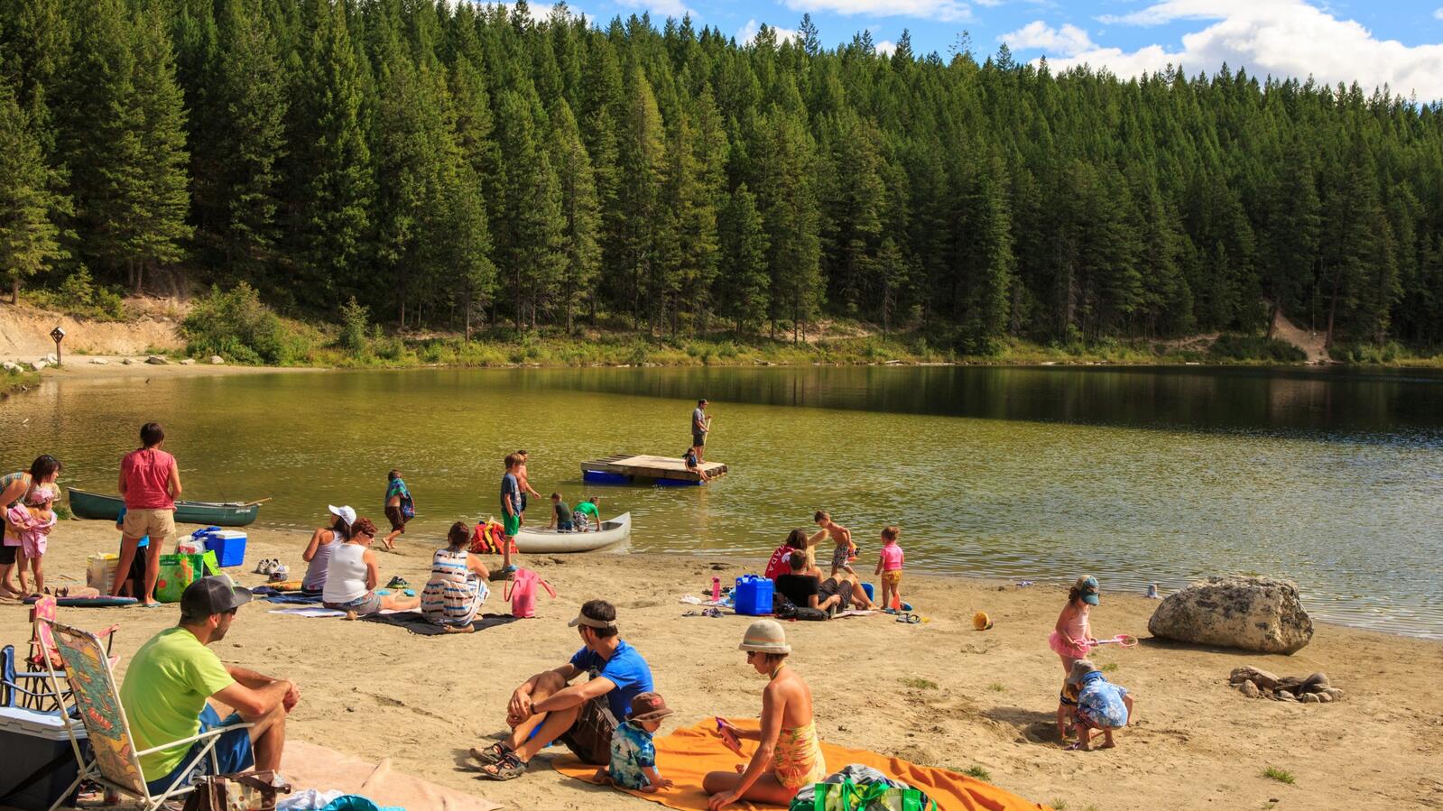 Cedar Lake is a small wilderness lake accessed via a gravel forestry road on the way to Kicking Horse Mountain Resort. This forested area above the Columbia River offers camping and day use with picnic sites, parking, and toilet facilities.