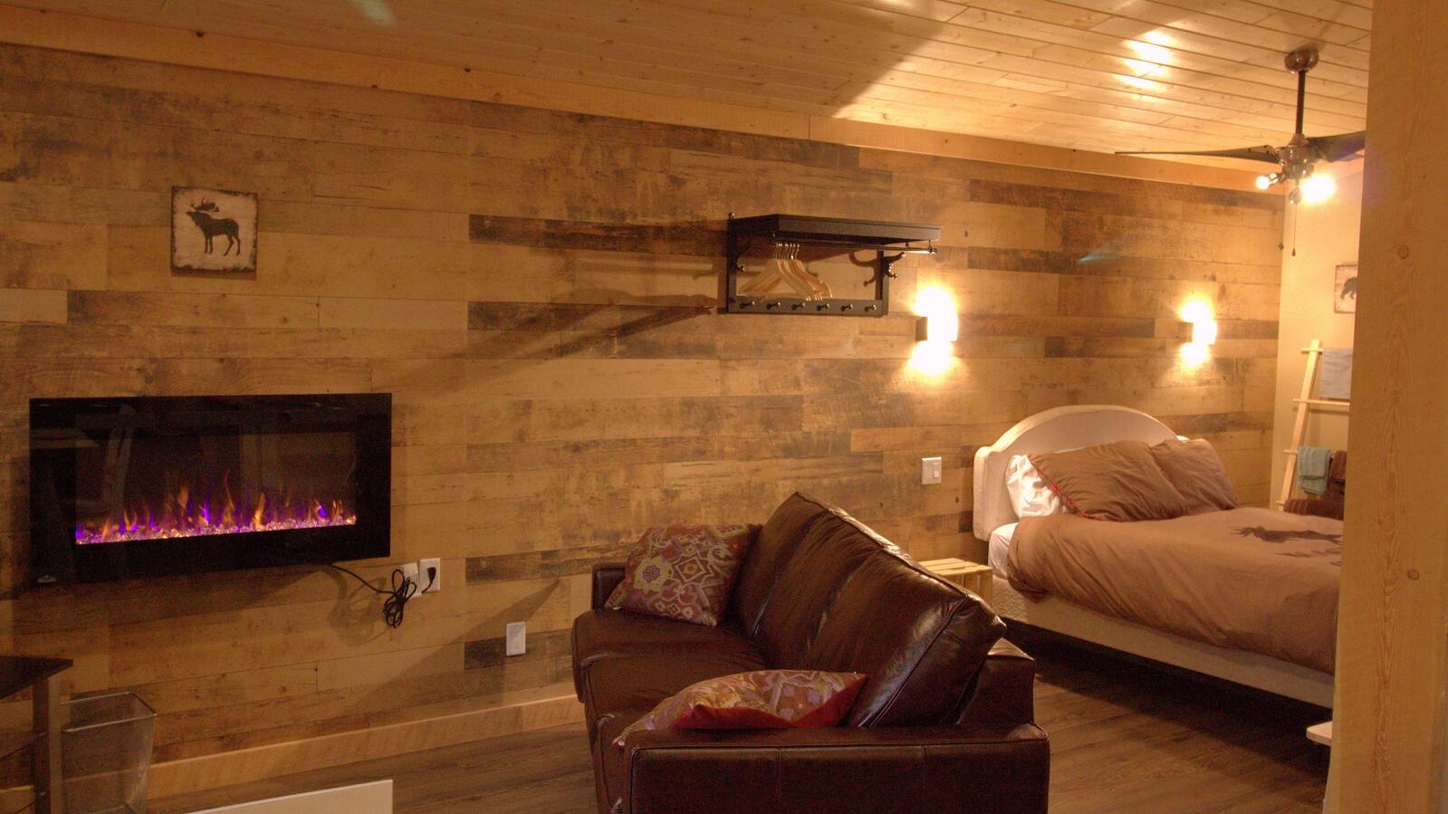Our Kabin gives you a high-end cabin experience whilst not losing the luxuries of home. Comfortable queen bed, and in the lounge area you will find a large leather sofa bed.