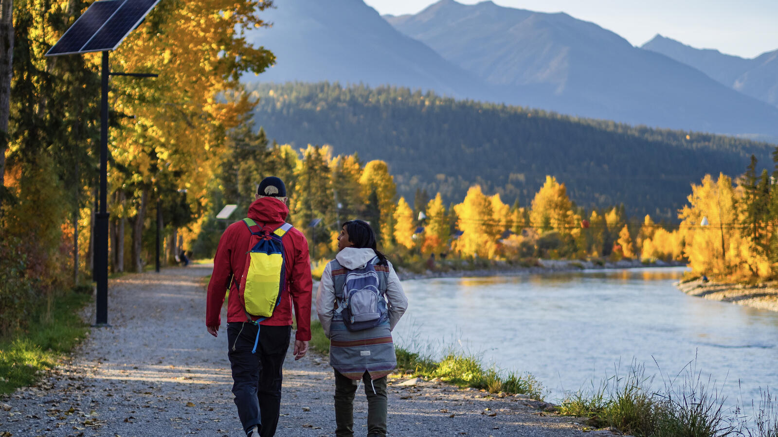 You can start right at the Kicking Horse Pedestrian Bridge or jump on anywhere along this well-marked trail.